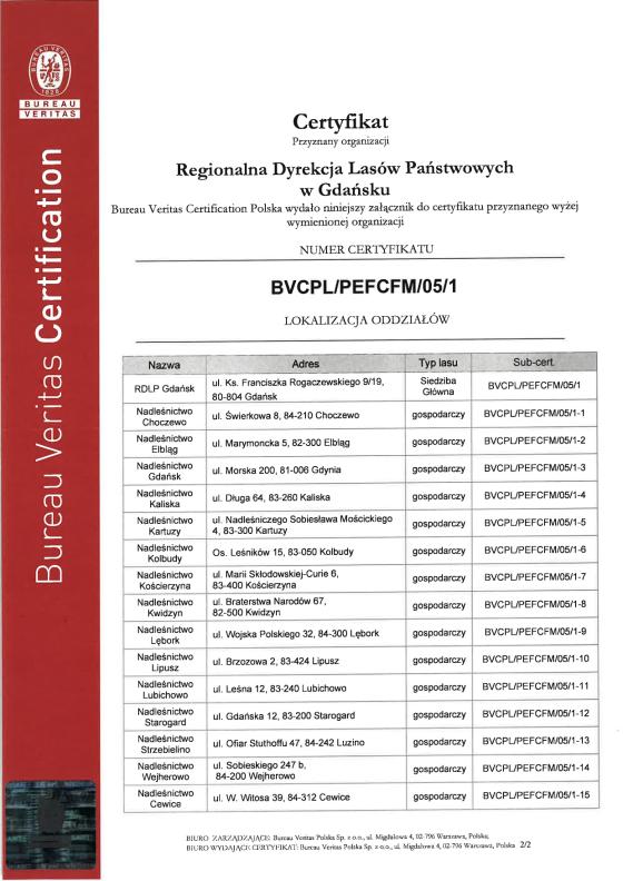 • Certyfikat obowiązuje na terenie całej RDLP w Gdańsku