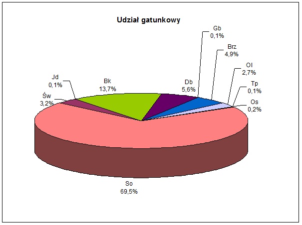 Powierzchniowy udział gatunków panujących w lasach RDLP Gdańsk.